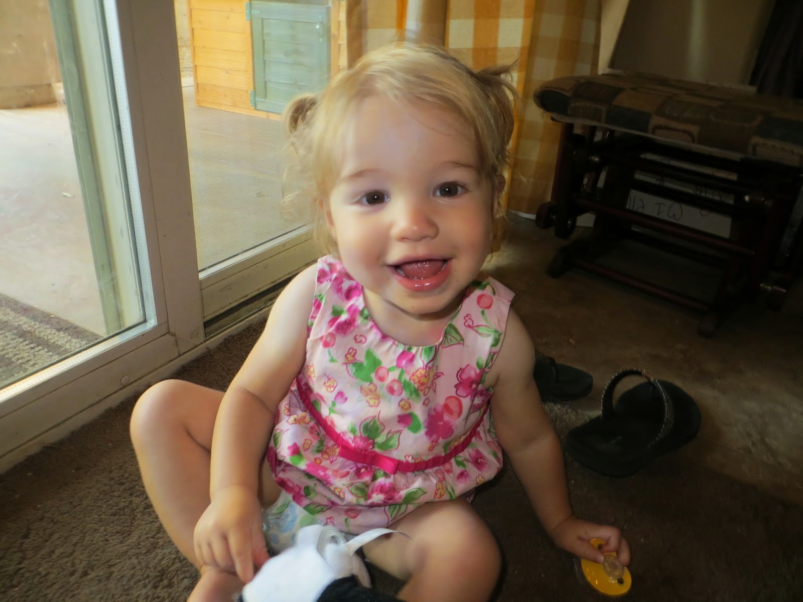 You have started eating all kinds of solids. Some of your favorite foods (besides bananas) are sweet potatoes, green beans, corn, chicken, beans, Triscuits, graham crackers, corn, and chocolate :o) (that's my girl!) Now to get you to guzzle down cow's milk (but that's another story for another day.) :)